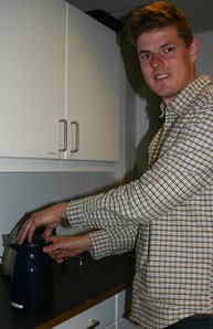 - Køkkenet er nærmest blevet vores centrum, siger bachelorstuderende i Agrobiologi Jens Christensen. (Foto: Janne Hansen):