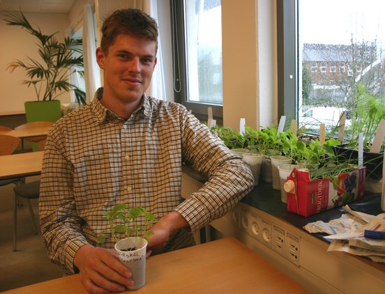 På besøg på Katrinebjerg møder AGRO Biweeklys udsendte medarbejdere den 28-årige bachelorstuderende i Agrobiologi Jens Christensen, som stolt viser rundt i de lyse og venlige lokaler.