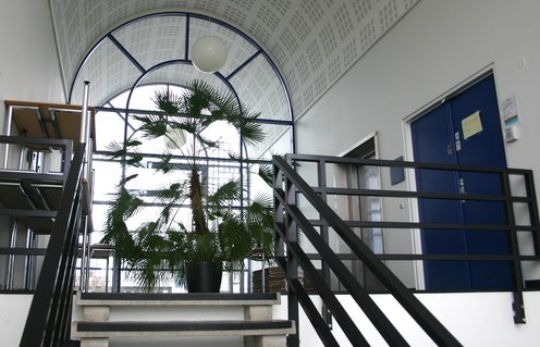 Allerede på vejen op ad trappen fornemmer man, at lokalerne på Katrinebjerg er lyse og venlige. (Foto: Janne Hansen):