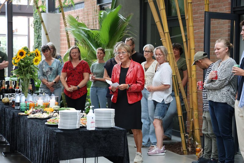 Dagen blev fejret sammen med kolleger, der ønskede hende et stort tillykke og takkede for hendes mangeårige engagement og værdifulde arbejde.