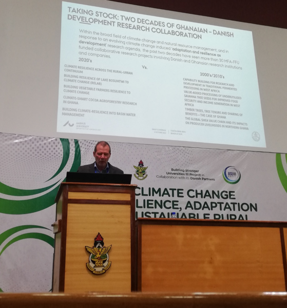 Når den danske udviklingsbistand til Ghana ophører, vil også udviklingsforskningsaktiviteterne ophøre. På konferencen blev det konstateret, at der inden for det brede område klimaændringer og forvaltning af naturressourcer i de seneste to årtier har været mere end 30 forskningssamarbejdsprojekter med deltagelse af danske og ghanesiske forskningsinstitutioner og virksomheder, der er finansieret af det danske udenrigsministerium. AGRO har deltaget i en betydelig del af disse projekter og er fortsat involveret i projekter vedrørende grøntsagsdyrkning og agroforestry-projekter for kakao. BSU-faserne, der er forankret ved KNUST og UG, har utvivlsomt styrket den administrative og forskningsmæssige kapacitetsdimension og har også skabt tværfaglige forskningsresultater gennem ph.d.- og pilotforskningsprojekter med fælles tilsyn.
