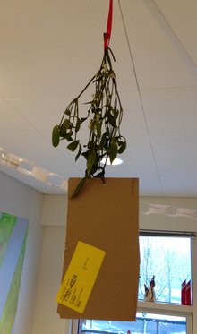 I SYSTEM er der hængt mistelten op uden synderlige effekt - men der er også vedhæftet et advarselsskilt, så man ikke uforvarende kommer til at stå under grenen. (Foulum fotos: Janne Hansen):