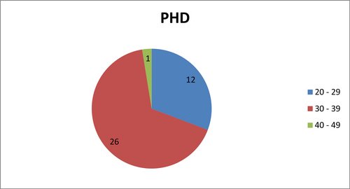 Som det fremgår af figuren, må det forventes, at hen over de kommende 17 år vil 47 procent af medarbejderstaben gå på efterløn eller pension, hvoraf 16 procent allerede fratræder indenfor de kommende syv år. Ses der bort fra ph.d.-studerende er tallene henholdsvis 55 procent og 19 procent.