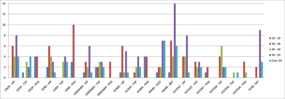 Aldersfordeling af VIP, TAP og ph.d.-studerende i AGRO: