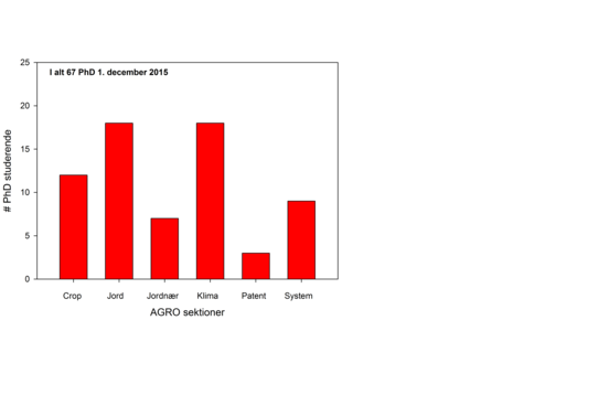 I 2015 forsvarede 19 studerende deres ph.d. og vi vil have et lignende antal forsvar i 2015. Med en ambition om et uændret studentertal på cirka 70 ph.d.-studerende skal AGRO således optage omkring 20 studerende i 2016 eller cirka fem pr. runde. I 2015 vil AGRO indskrive 22 studerende, hvis de fem fra novemberoptaget bliver indskrevet. Derudover har vi også to kandidater, der er godkendt til indskrivning såfremt de opnår finansiering fra hjemlandet.