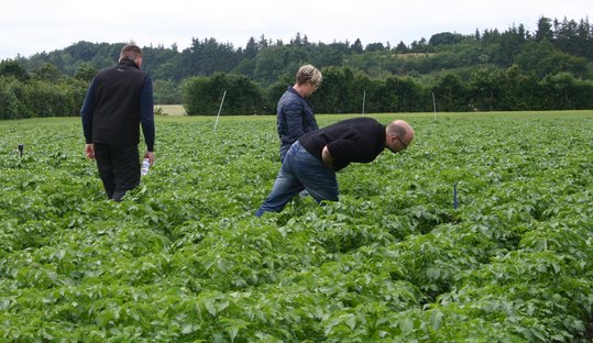 Resultater af deres anstrengelser blev vist frem ved et åbent hus-arrangement om præcisionsvanding og -gødskning af kartofler den 21. juni 2016. Her kom 29 kartoffelproducenter, konsulenter, virksomhedsfolk og andre kartoffeleksperter på besøg i vores nye kartoffelmark. Kartoflerne står i den sandmark, som vi har lejet som erstatning for sandmarkerne ved Jyndevad.