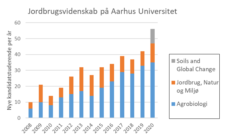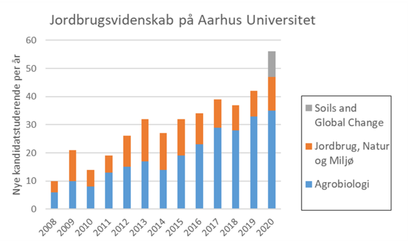 I bogkapitlet gennemgås de mange facetter og kritiske faktorer for udviklingen af den forskningsbaserede rådgivning og jordbrugsuddannelse, og faktisk har Jordbrugsuddannelserne ved Aarhus Universitet udviklet sig ganske positivt over den seneste snes år (Figur 2). Men både samfundets behov og potentialet for flere studerende rækker til noget mere, og målet er mange flere indskrevne per år. Og her vil de nye uddannelser i veterinærmedicin og husdyrvidenskab helt sikkert kunne bidrage med et ekstra boost.