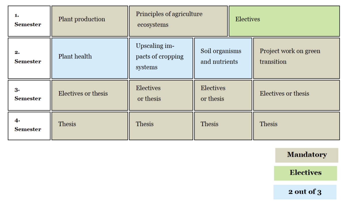 The program will be organized into three tracks: Plants, Impact, and Soil. Second semester, students must take at least two mandatory courses from these tracks, while the third can be chosen as an optional or elective course. This structure ensures a strong foundation across the core areas, while still giving students the flexibility to shape their studies according to their individual interests. First intake of students will be in August 2027.