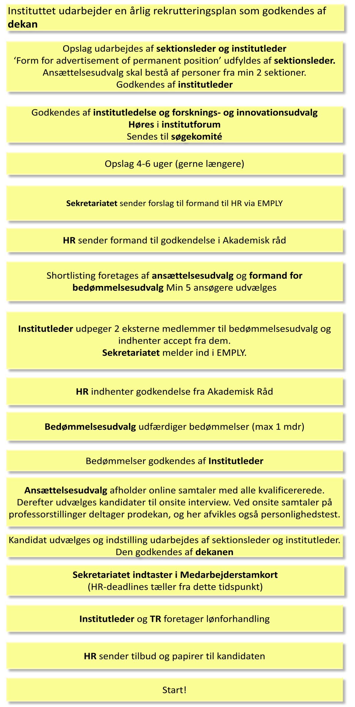 Ansættelse af fast VIP sker i henhold til instituttets rekrutteringsplan, som opdateres en gang årligt. Processen kører jf. flowdiagrammet.
