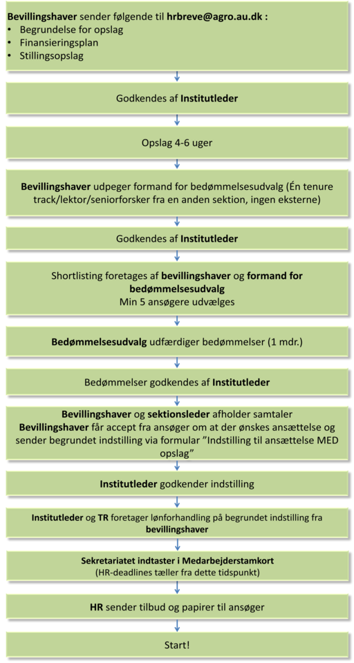 Postdoc og videnskabelig assistent kan ansættes i op til 1 år uden opslag, og kan forlænges med yderligere op til 1 år.