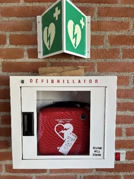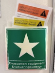 Evacuation box with yellow vest (evacuation leader) and orange vest (meeting point leader) and instructions