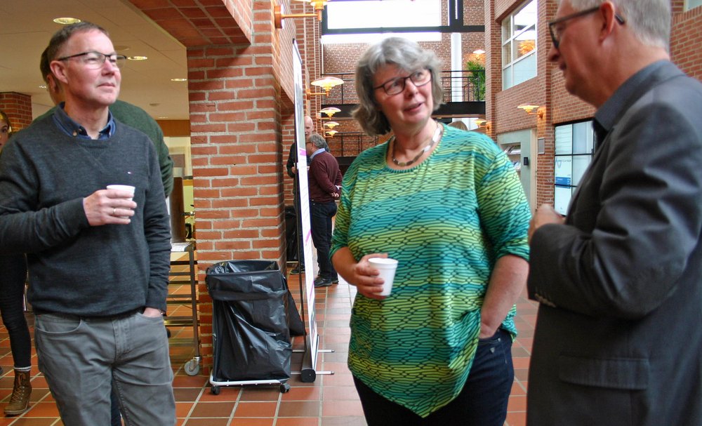 Three of the speakers chatting during the break. From the left it is Søren O. Petersen, AGRO, Anne Berg Olsen Thise Mejeri, and Klaus Lønne Ingvartsen, ANIS: